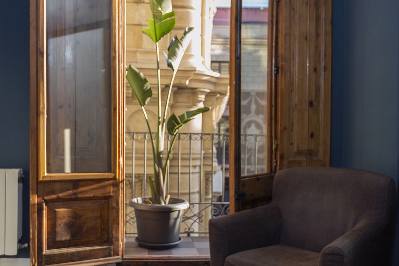 Habitación exterior, con balcón, luz natural, soleada, en una localización vibrante, llena de vida. Una atmosfera acogedora, cálida y confortable. Wifi rápido, Smart Tv, AC, cama súper cómoda (1,60x2m) y sábanas de alta calidad. Ventanas reforzadas con cristal térmico y acústico para un buen descanso. Todo preparado para ofrecerte una experiencia única.